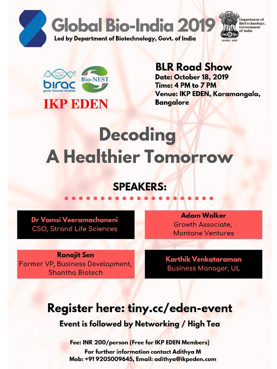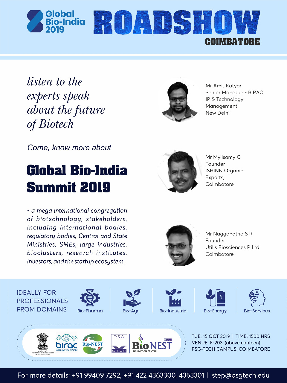 Department of Biotechnology (DBT), Ministry of Science & Technology, Government of India and it's Public Sector Undertaking, Biotechnology Industry Research Assistance Council (BIRAC) are organizing Global Bio-India Summit 2019, a mega international congregation of biotechnology stakeholders, including international bodies, regulatory bodies, Central and State Ministries, SMEs, large industries, bioclusters, research institutes, investors, and the startup ecosystem.